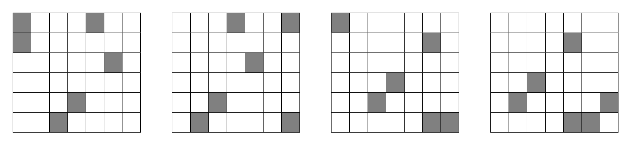 图 D.2:图 D.1 中均匀 bánh bò hấp 组合的所有四个 6 × 7 子网格。