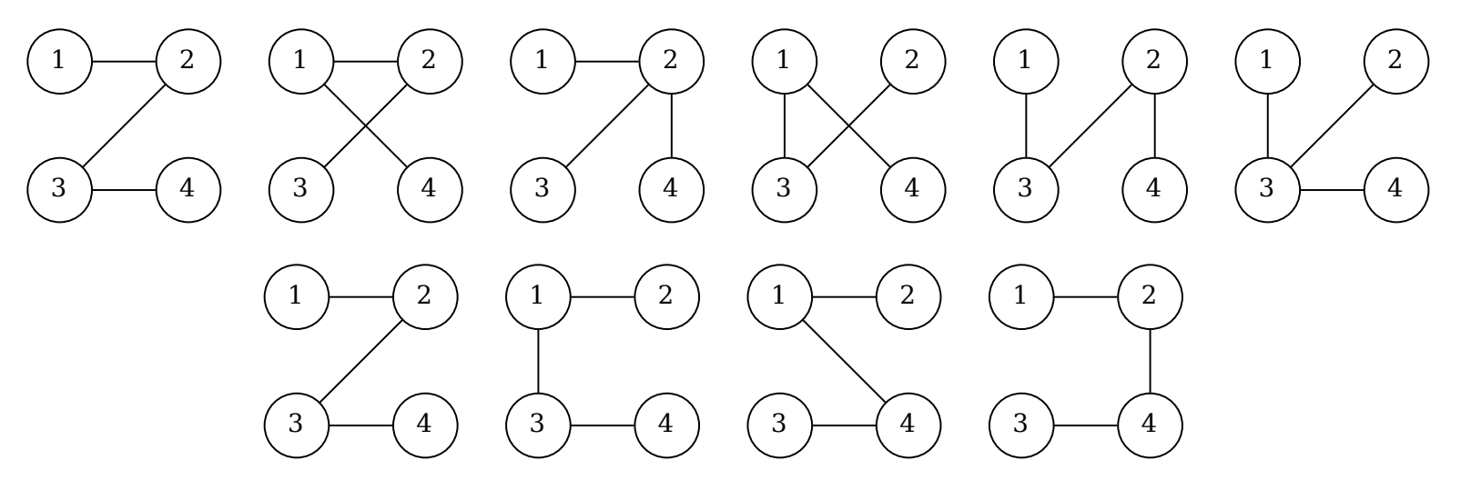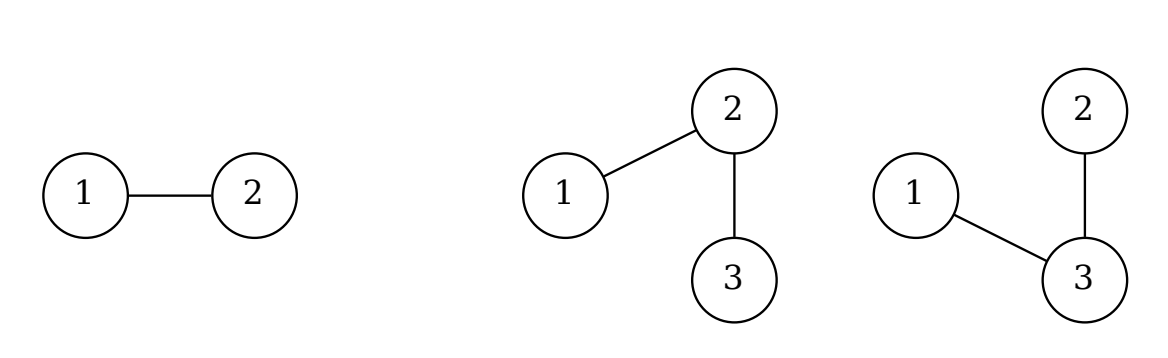 如果存在两个下标 $i$ 和 $j$,使得标号为 $i$ 和 $j$ 的顶点在其中一棵树中由边连接,而在另一棵树中没有连接,则认为这两棵树不同。