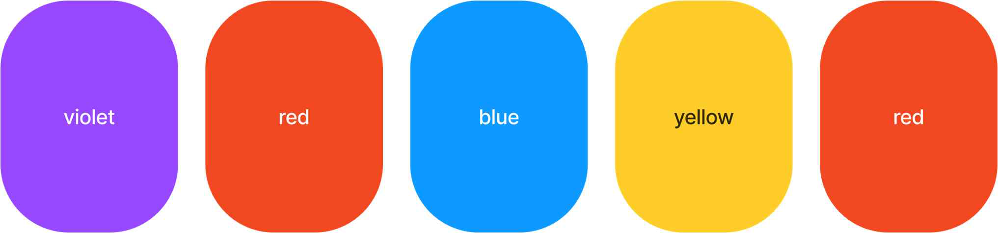 如果我们翻转一张卡片,该卡片的顶面和底面就会互换。如果我们翻转从左往右数的第 3 张和第 4 张卡片,那么卡片顶面的颜色将变为如下所示。