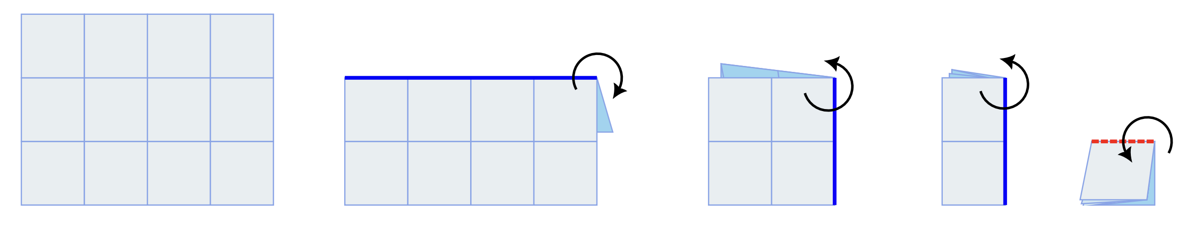 以下是对 $3 \times 4$ 地图进行此类折叠的示例。