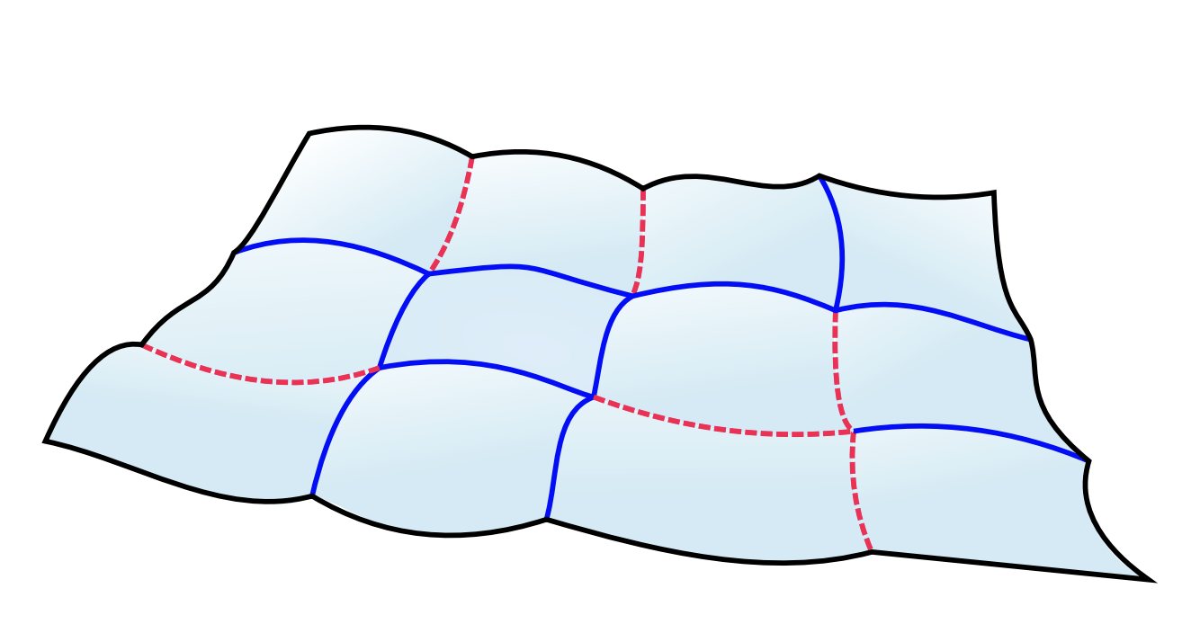 折痕线创造了一个 $m \times n$ 的单位正方形网格!Victorino 将此过程称为“流形法”(manifold method),而流形法的结果就是“流形地图”(manifolded map)。