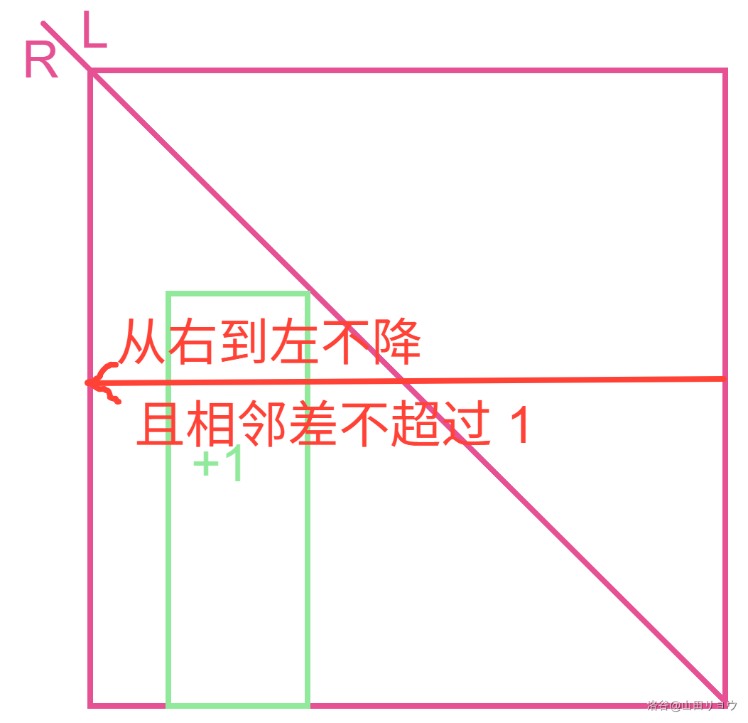 从操作的组合意义上讲我们可以发现对于某一行,$l$ 从大到小的权值不降,而且相邻两项差不超过 $1$。